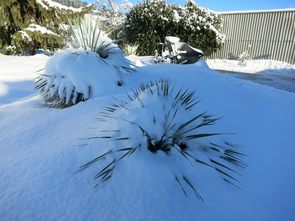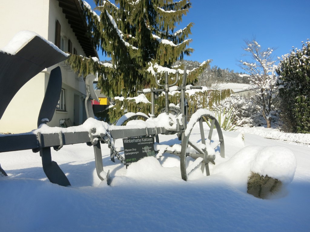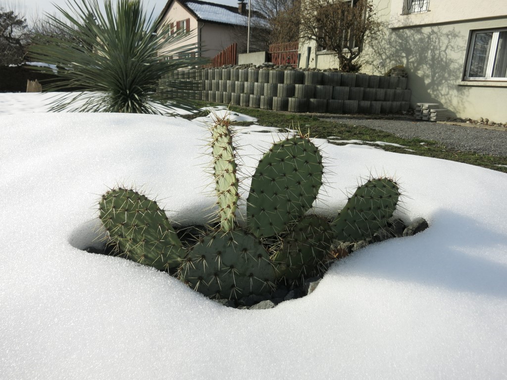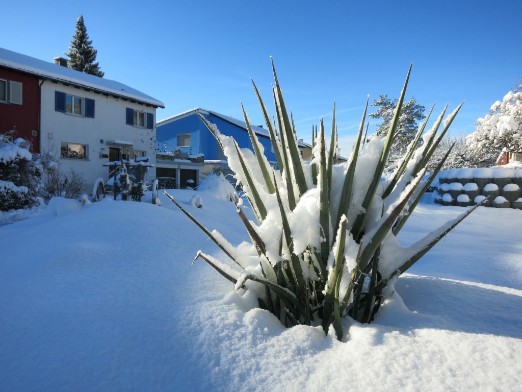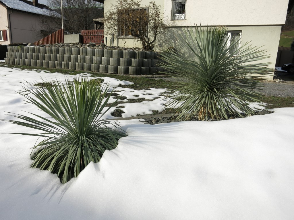 Die Pflanzen haben ihren ersten Winter problemlos überstanden und trotzten bereits massig Schnee mit drei Tagen Dauerfrost und einem Temperaturminimum von -14°C am Morgen des 18.01.2016.